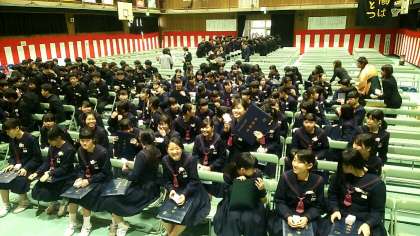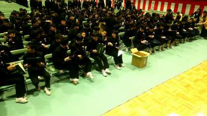卒業生は卒業証書をフォルダーに入れ、紅白饅頭をいただきました。
