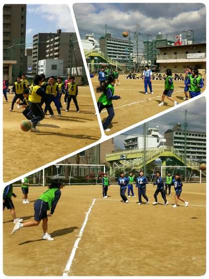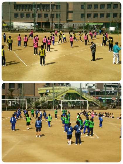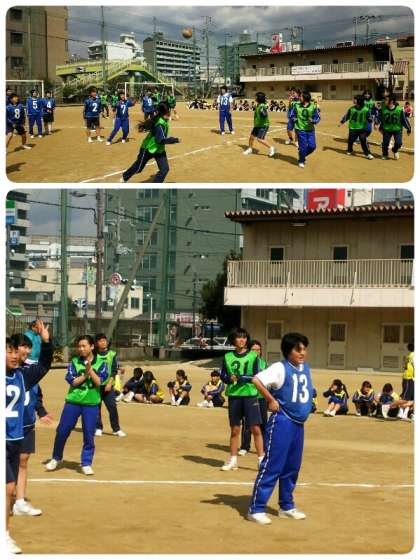 競技種目はドッジボールでしたが、普段馴染みの長方形のコートではなく、ひし形のコートで行いました。
