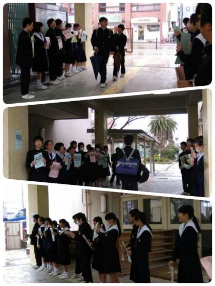 昨日お知らせした吹奏楽部ですが、本日は登校してきた人たちに定期演奏会の宣伝活動を行ないました。