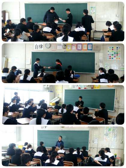 2時間目は1・2年生ともに教室に戻り、学活です。配布物がたくさんあったり、この1年間を振り返って思い出を語ったり、3時間目の大清掃の分担場所を決めたりと、各クラス忙しそうにしていました。