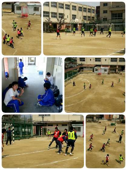 春休み中も色々なクラブが活動していますが、中庭ではハンドボール部が活動していました。
