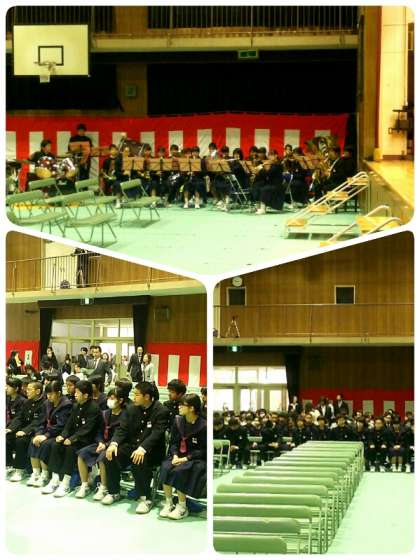 待ち時間の間、吹奏楽部がコブクロの「未来」を、卒業式に続き演奏しました。