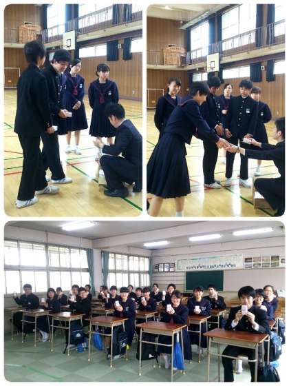 片付け作業が終わると、本日参列した在校生代表生徒と式典演奏を担当した吹奏楽部員はPTAより紅白饅頭をいただき、思わずにんまりしました。