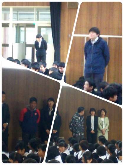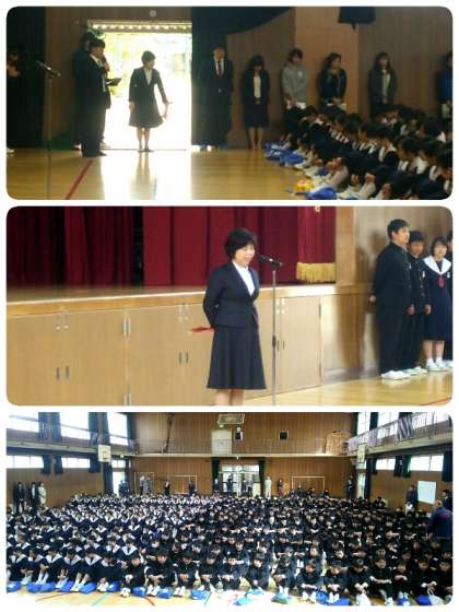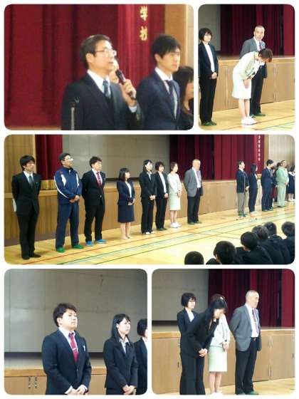 その後、新しく本校に着任した先生の紹介がありました。今年度は先生方の入れ替わりが多く、前にズラッと並んだ新しい先生方に生徒たちも少し驚いていたようです。