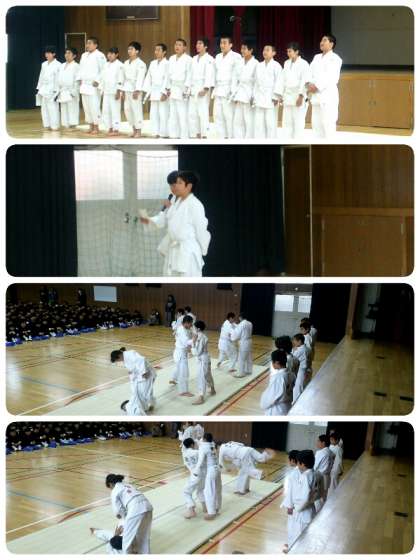 10番目は柔道部です。マットを広げ、受け身や投げ技を披露してくれました。
