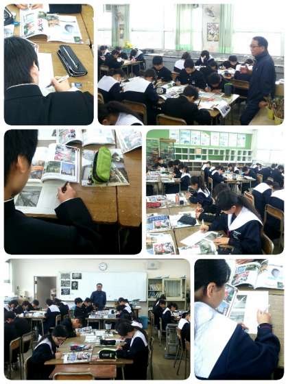 1年2組の1時間目は美術室に移動して美術の授業でした。