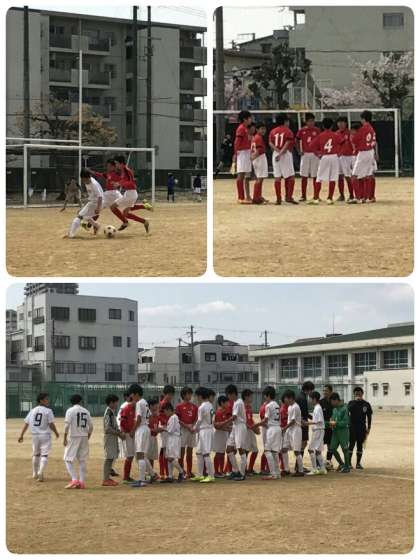 昨日サッカー部は午後から放出(はなてん)中学校に出向き、大阪市サッカー春季大会予選トーナメント1回戦に臨みました。