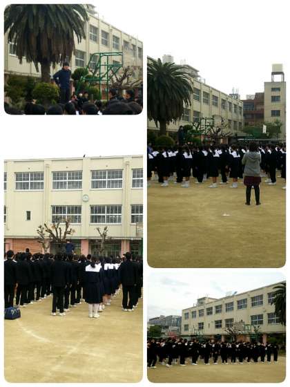 先週月曜日の始業式から1週間が経ちましたが、新年度になってから初めての全校集会となります。学年集会と同様早めに登校して、中庭に並びますが8時15分頃には大体の人が集合していました。