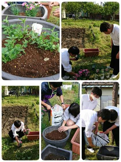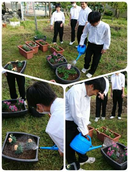 本日部編成もありましたが、生徒会役員の人たちはプランターに土を入れ、お花を植えました。美しく気持ちの良い学校づくりを進めます。