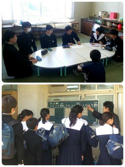 美化委員会、風紀委員会、体育委員会の様子と各委員会で決定された先月の反省や今月の目標が生徒会役員の人たちに報告されます。