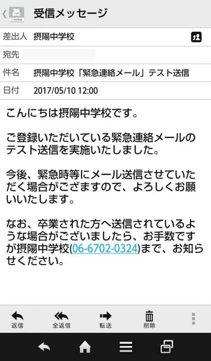 先ほど緊急連絡メールのテスト送信を行いました。