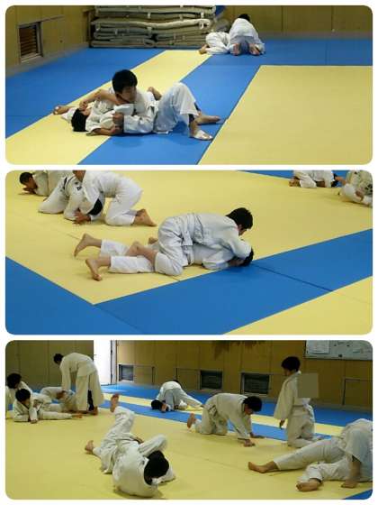 格技室では柔道部が寝技の練習をしていました。