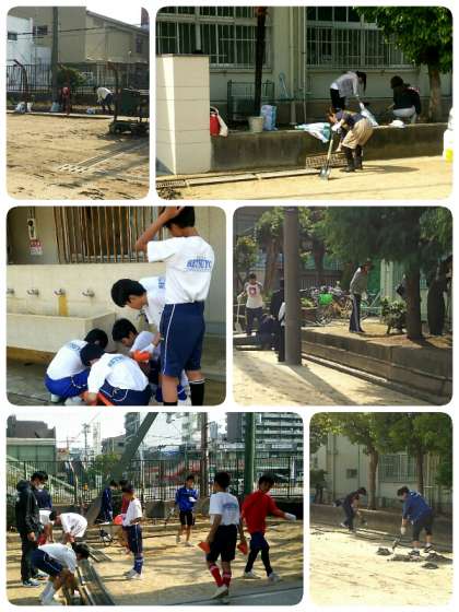 毎年、この時期に施設開放事業で中学校のグラウンドや体育館を使用する団体の皆さんのボランティアでPTAの役員や実行委員の皆さんにお世話をいただき、実施しています。