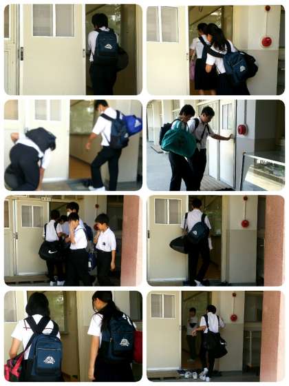 今朝は修学旅行に行く3年生が事前指導のために荷物を持って登校してきました。