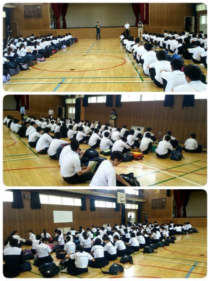 まず、男女別々に分かれて持ち物の確認をひとつひとつ行いました。今日、揃っていなかったものは帰宅した後必ず用意してください。