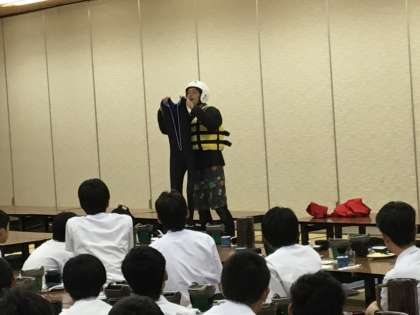 食事会場でそのまま、その後のラフティングについての説明を受けました。