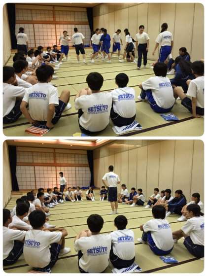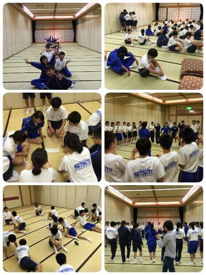 大広間を4つに仕切って、クラスごとにレクリエーションの時間です。