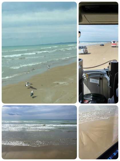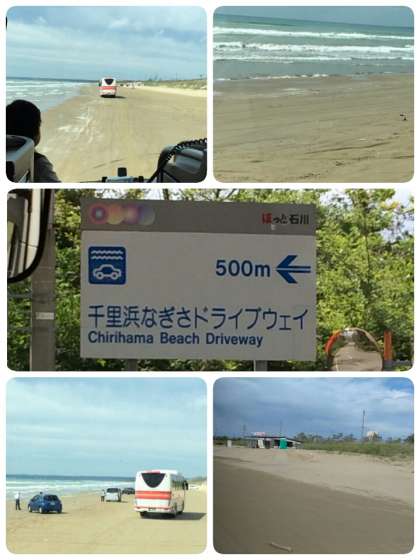 途中、千里浜なぎさドライブウェイという車が走行できる全長約8キロメートルの砂浜の道路を通行しました。車で砂浜を走れるのは日本でここだけというドライブウェイですので、貴重な体験になりました。