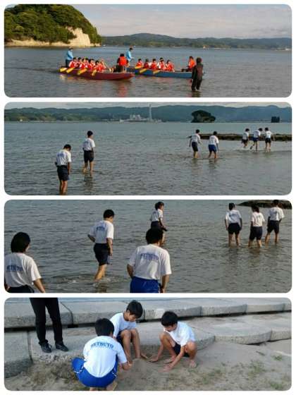 少し早く終わったドラゴンボートの人たちは、海の中に入って遊びました。砂遊びをしている人もいました。