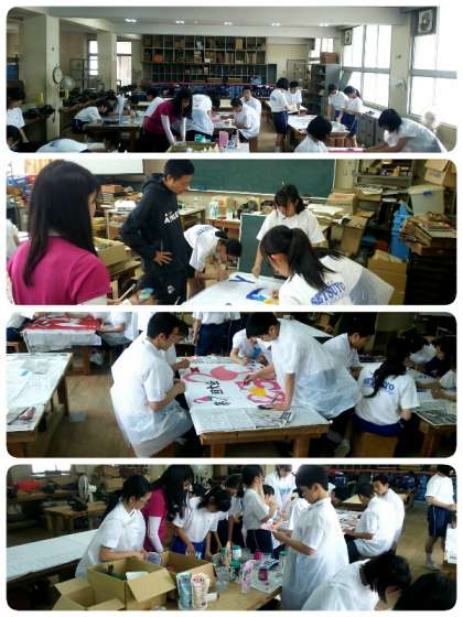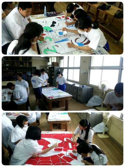 昨日の放課後、2年生は学級旗づくりの続きを行いました。