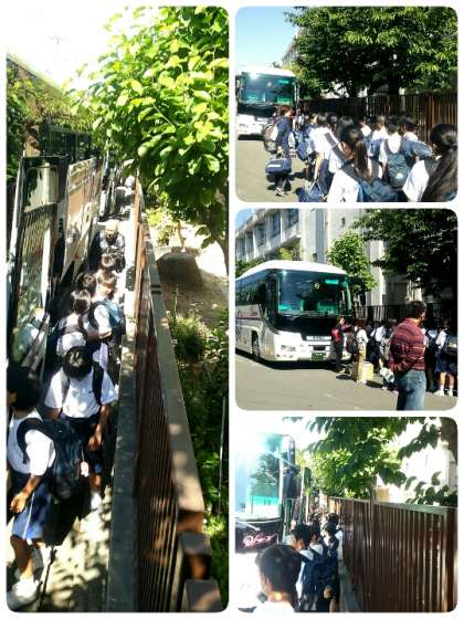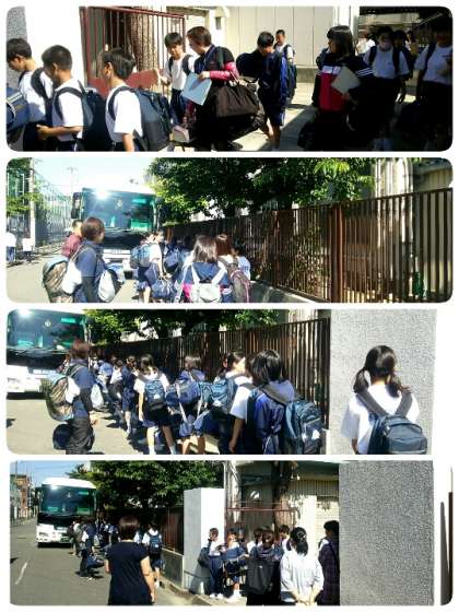 バスに乗り込んでいきましたが、荷物をトランクに載せるのに通路が狭いため少々時間を要しましたが、9時1分に73期生一行を乗せたバスは大阪府立青少年海洋センターを目指し、出発しました。