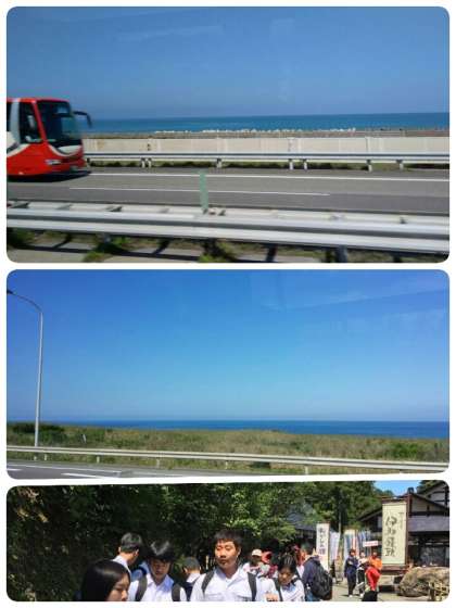 徳光パーキングエリアを出発したバスは日本海を右手に見ながら、加賀伝統工芸村ゆのくにの森を目指し、到着です。