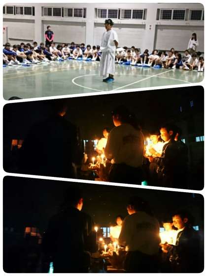 浜本先生が火の神様を演じ、キャンドルファイヤーを行いました。幻想的な雰囲気を味わったひとときです。