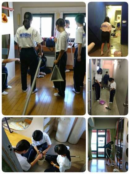 朝のつどいから部屋に戻ると、部屋の清掃です。「来た時よりもきれいに!」の精神で清掃に励みました。