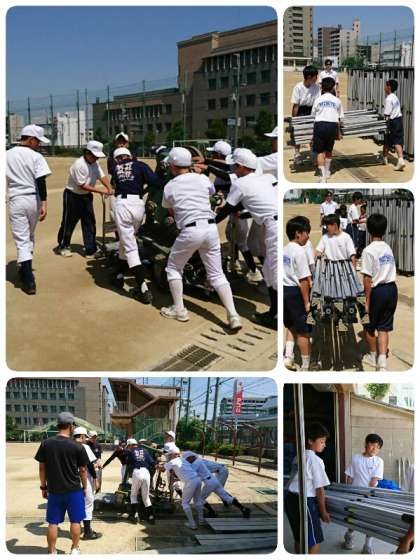 今日も野球部、男子バスケットボール部の人たちに協力してもらっい、体育倉庫の整理をしました。