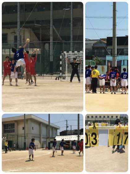ハンドボール部は午前中の市岡東中学校との試合に勝利し、次の試合は大淀中学校と戦いました。