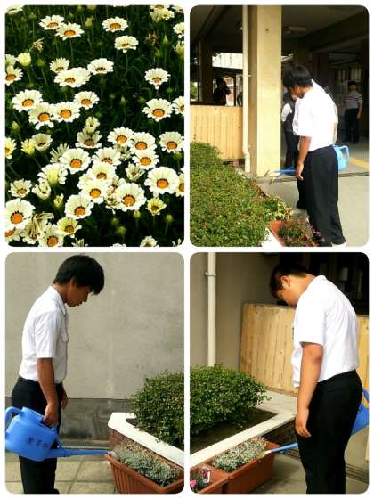 生徒会役員の人たちは鉢植えのお花に水やりをしてくれていました。
