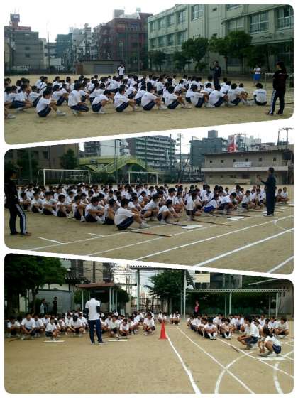 1時間目は入場行進の練習を繰り返し行いました。回数を重ねるごとに良くなっていきましたが、腕の振りが小さかったり、膝を上げきれなかったりで進み方が速くなってしまうのが課題のようです。