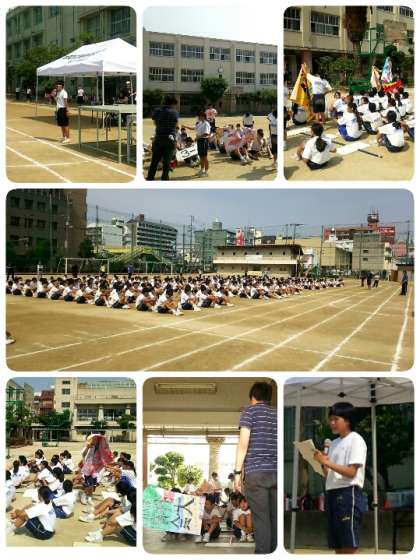 体育委員の人と旗のデザイナーの人がみんなの前でそれぞれの学級旗を披露し、ランウェイを歩きました。