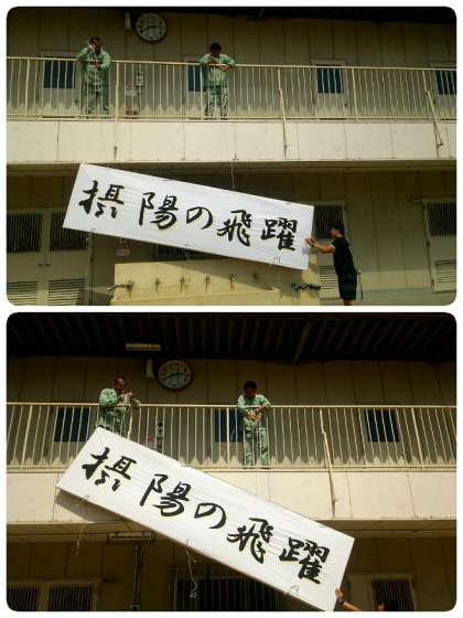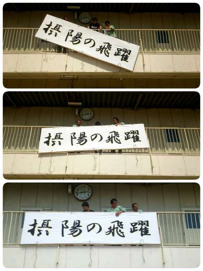 先日から生徒会役員の人が作成してくれていた横断幕が完成しました。