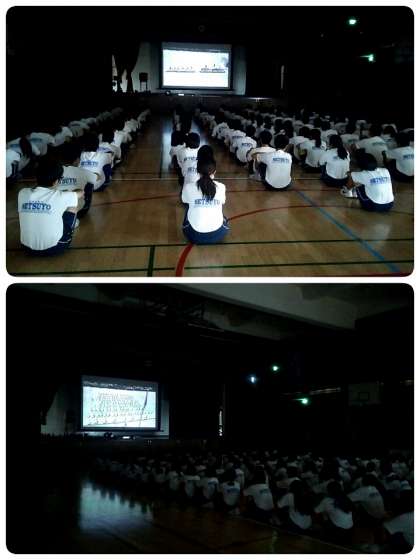 3年生は6時間目、体育館で午前の学年演技の練習の様子を録画したビデオを全員でチェックしました。