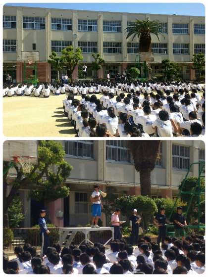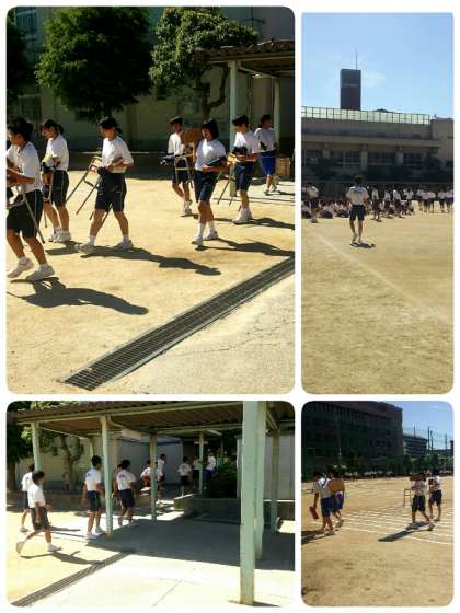グラウンドにイスを出し、中庭に集合して開会式の準備をしました。