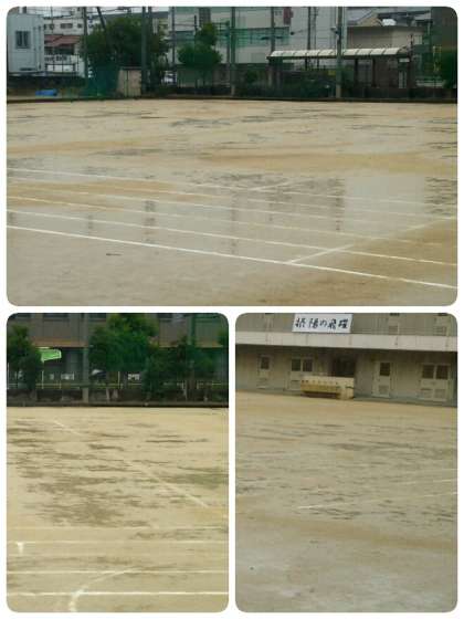 昨夜から雨が降っていますが、登校の時間帯には水が浮いていなかったグラウンドにも現在ではかなり水が浮いています。