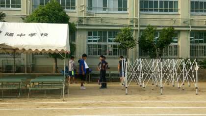 本校教職員、早朝より生徒席のテントの設置等、準備中です。