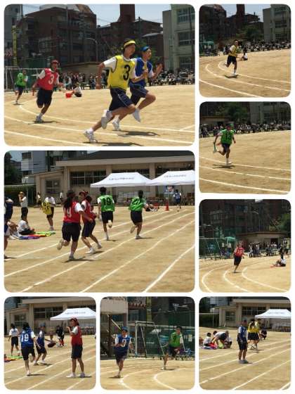 男子も女子も関係なく全員でバトンを渡していきます。バトンパスでの作戦がポイントです。
