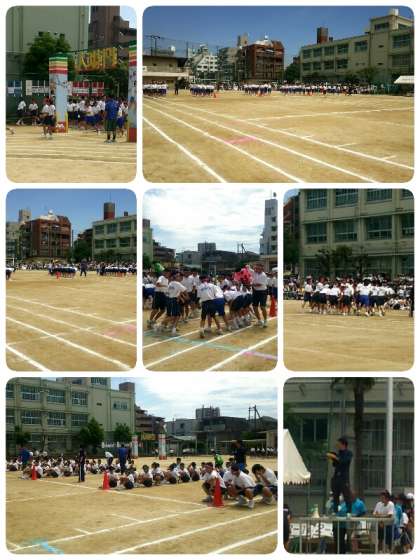 2年生学年種目「背渡り競争」です。