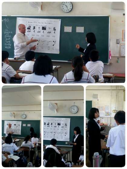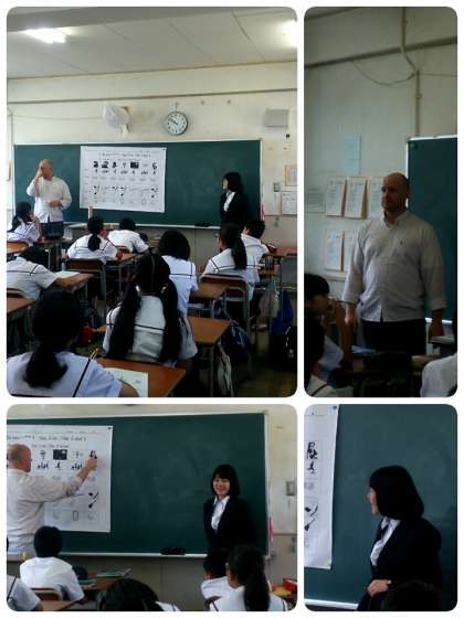 英語の教育実習に来ている実習生が今日はC−NETのティモシー先生と1年生の授業を行なっていました。