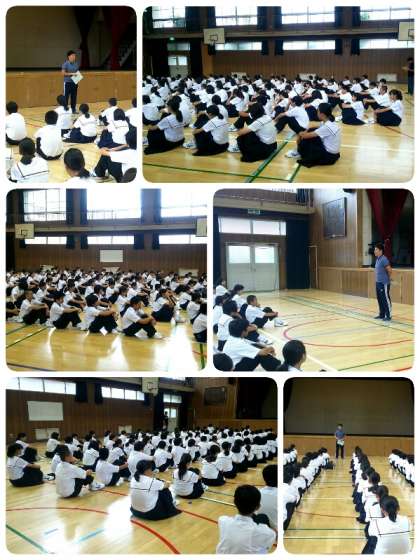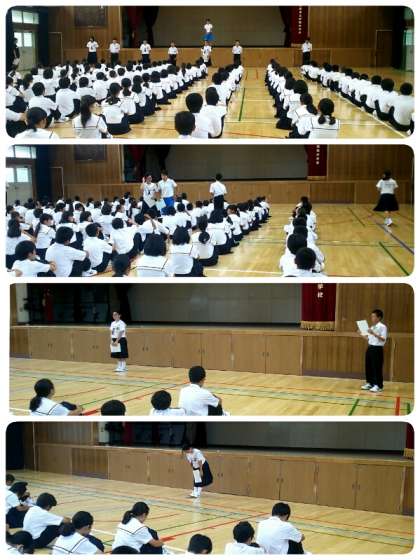 浜本先生からは「最近、難しいと思うことに対して『どうせでけへんし』とか『もう無理』とかいう声を耳にすることがあります。」「最初から無理と言って努力をしなければ、できる可能性のあることもできなくなります。」「難しいと思うことであっても、少しずつ努力をしていってほしいです。」という話がありました。