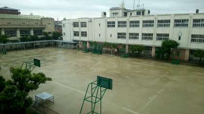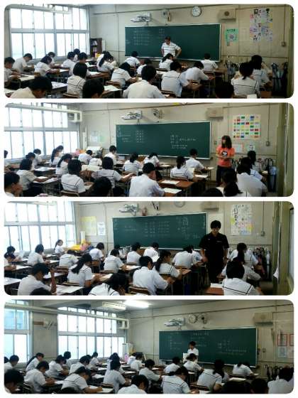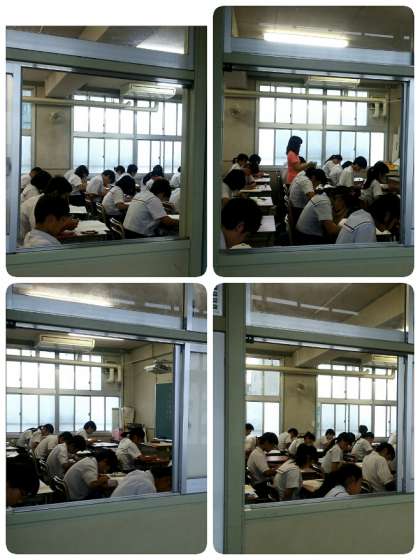 1時間目が始まる少し前、小降りになっていた雨がまた強くなりました。写真は1時間目のテスト開始直前とテスト中の様子です。