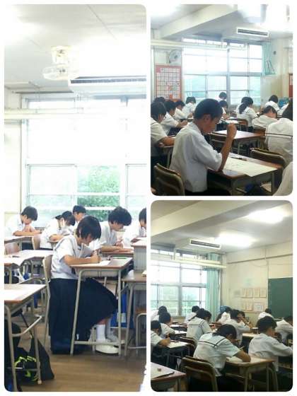 本日は1・2年生が期末テスト2日目、3年生が3日目です。それぞれ最終日を迎えました。