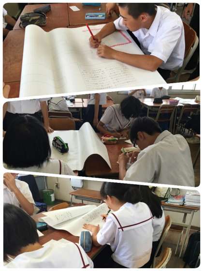 3年生は先日から取り組んでいる修学旅行の壁新聞も完成へ向け、作業を進めました。