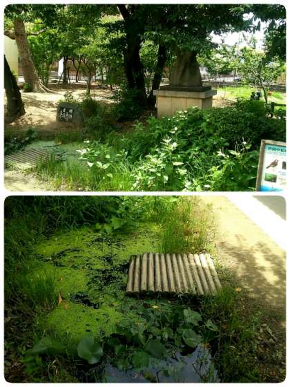 池の周りの様子も季節ごとに色々と変わった姿を見せてくれますが、夏場になってくると草が生い茂って大変な状態になります。先日、管理作業員さんが草を刈ってくれていましたが、その後のメダカの様子はわかりませんでしたが、ちゃんといました。