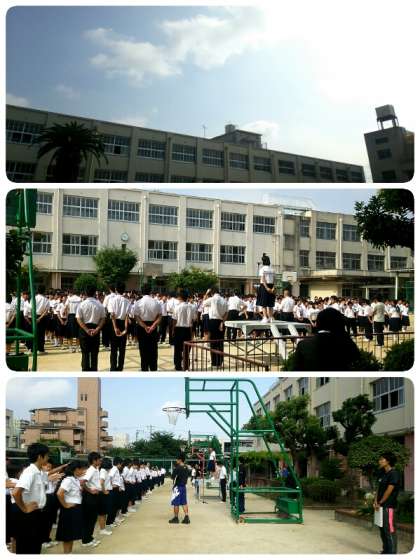 校長先生からは「先日『平野郷夏祭り前夜祭』に出席しましたが、ごあいさつをされた皆さんは、楽しいだけでなく、事故なく安全なお祭りにしましょうとおっしゃっていました。祭りには普段皆さんを見守ってくださっている地域の方々がいらっしゃり、安全に気を配っていただいていますが、色々な場所から多くの人が集まってこられます。中には人ごみに乗じて良くないことを考える人がいるかも知れませんので気をつけて行動してください。」