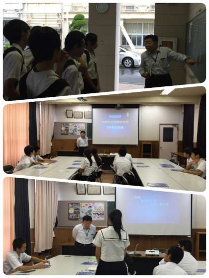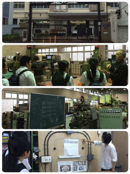 写真は公立の工業科の高等学校の様子です。工業と言っても、機械科や電気科など様々な学科がありますが、今回はそれらの様子を順に案内していただいたようです。