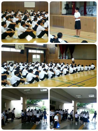 河野先生からは「先日校長先生からもお話がありましたが、1学期の締めくくりをきちんとしてほしいです。」「期末テストが終わったけれど、単に点数が良かった悪かったということではなく、自分は何がどこまでわかっているのかということをしっかり振り返ってほしいです。」「授業中はわかっていたとしても、家で復習しなければわかったつもりで終わってしまいます。」という話がありました。