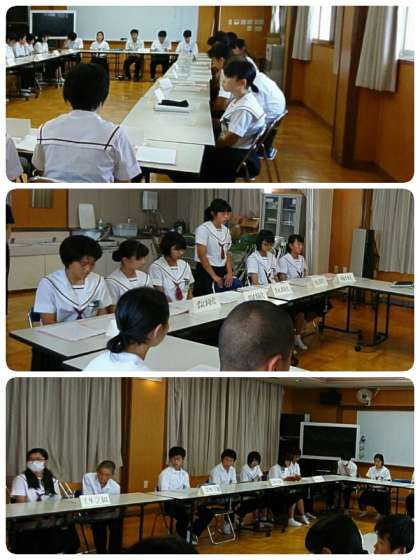 本日の放課後、生徒会役員、各学級委員長、生徒各種委員会の委員長が多目的室に集まり生徒議会を行いました。